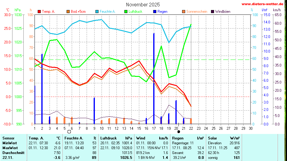 Max.(11:10 Uhr) 7.2 °C 8.3 °C [Vorjahr] |